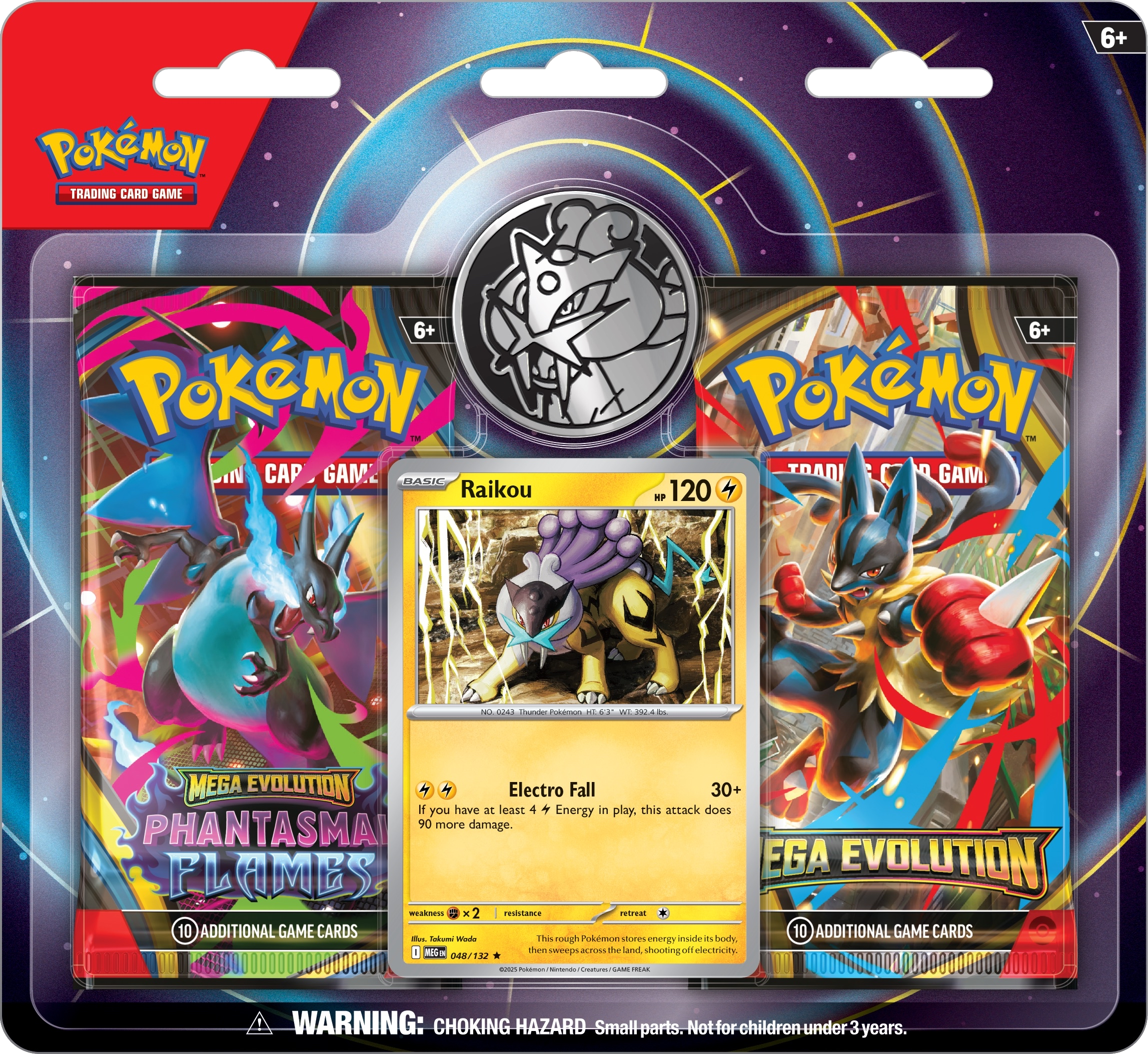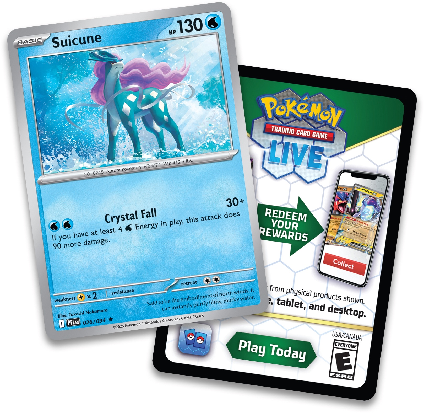 Pour les curieux, chaque pack comprend : 2 boosters, une planche d’autocollants, et une carte holo cosmo de Suicune (PFL 026) ou Kyogre (MEG 034), au prix de 9,99$ unité.