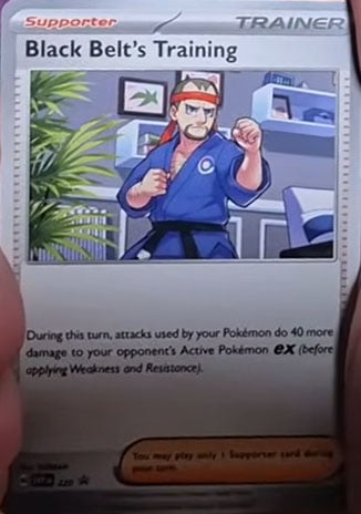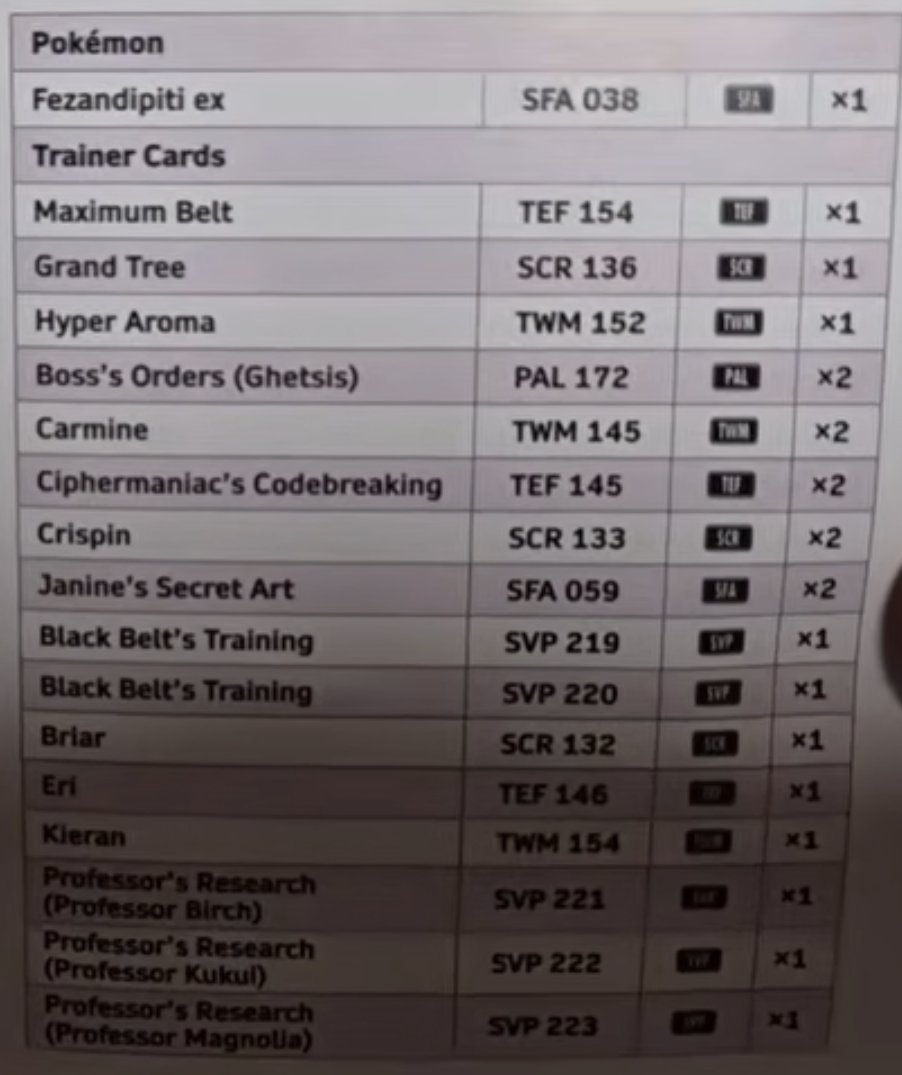 Edit du 23/10 : Révélation d'une partie de la liste des cartes du deck fourni, on y apprend avec surprise qu'il y a à l'intérieur les cinq dernières cartes promotionnelles du bloc Ecarlate & Violet (SVP219 à 223). Il s'agit de cartes Dresseurs : Entraînement de Karatéka et Recherches Professorales.