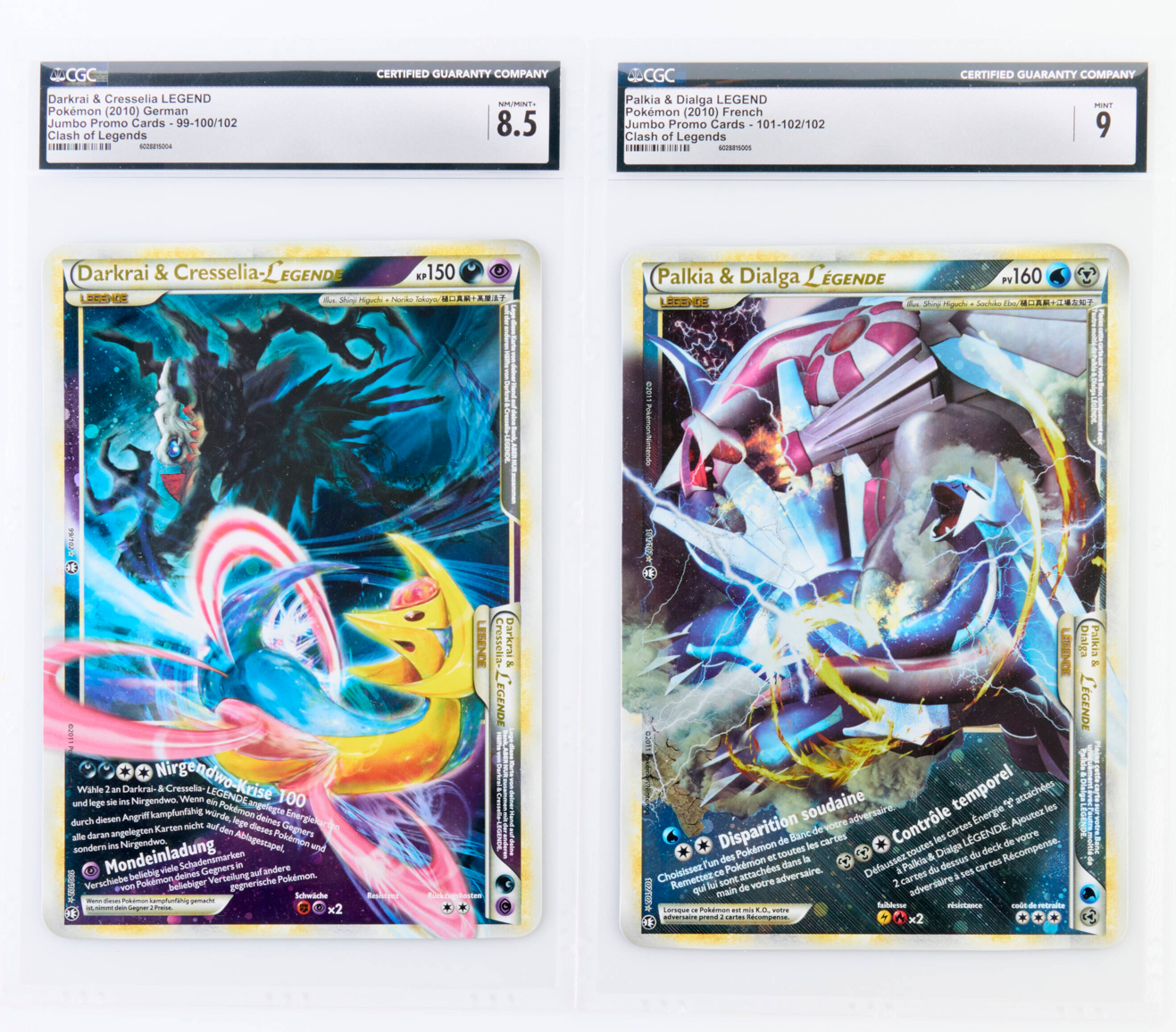 Cette dernière a été vendue avec une Darkrai & Cresselia allemande lors d'enchères. Les deux ont été gradées par CGC (RIP les cartes uniques à 8.5).